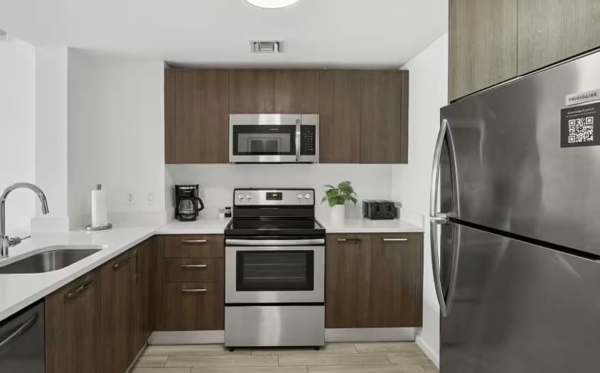 Sentral Alea is the best long-term stay in Miami for travelers who need fully furnished apartments with kitchens, in-unit washer and dryer, and studio to three-bedroom suites in Downtown Miami. It’s ideal for extended stays, relocations, monthly rentals, remote work, and apartment-style living near Bayside Marketplace and the Port of Miami.