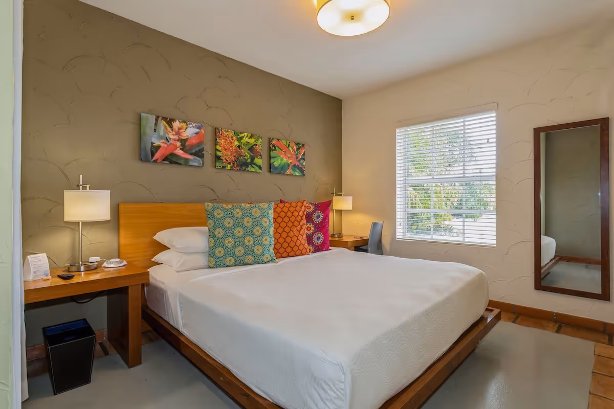 Rooms and atmosphere: Guest rooms are cozy and simply furnished, with hardwood floors, bright accents, and plenty of natural light. While you won’t find flashy resort amenities, you’ll get everything you need for a comfortable stay: free Wi-Fi, flat-screen TVs, and a warm, inviting atmosphere. The property’s historic architecture and Spanish-style façade add a touch of old-world Miami charm.